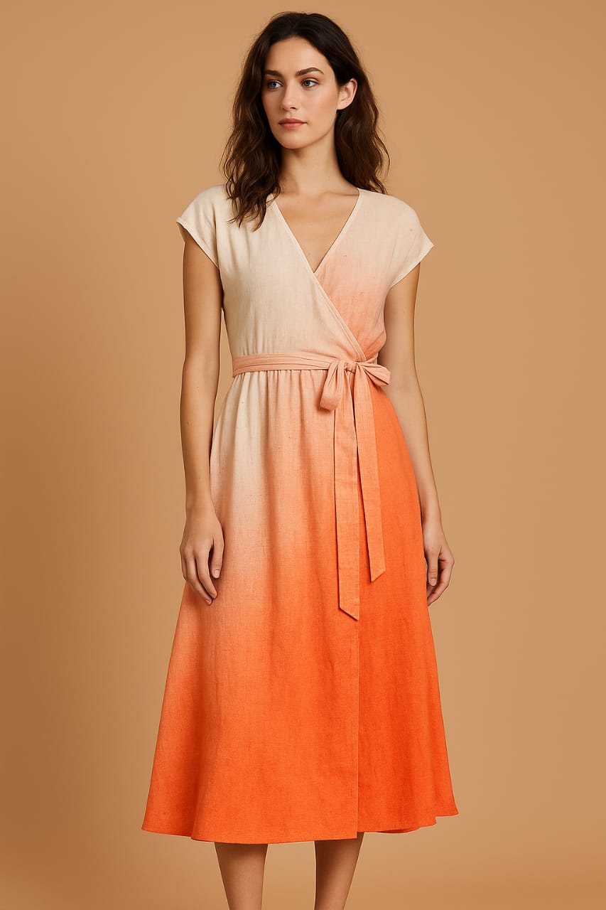 A dye shade that reminds you of a visit to the Hanuman temple and merges into the bliss of pure light. Made from handspun and handloom cotton with gentle and repetitive dips to make the perfect ombre. It drapes like a waterfall and feels like soft caress. Own this as a dress, a tunic, curtain drapes or a diwan sheet and own the room